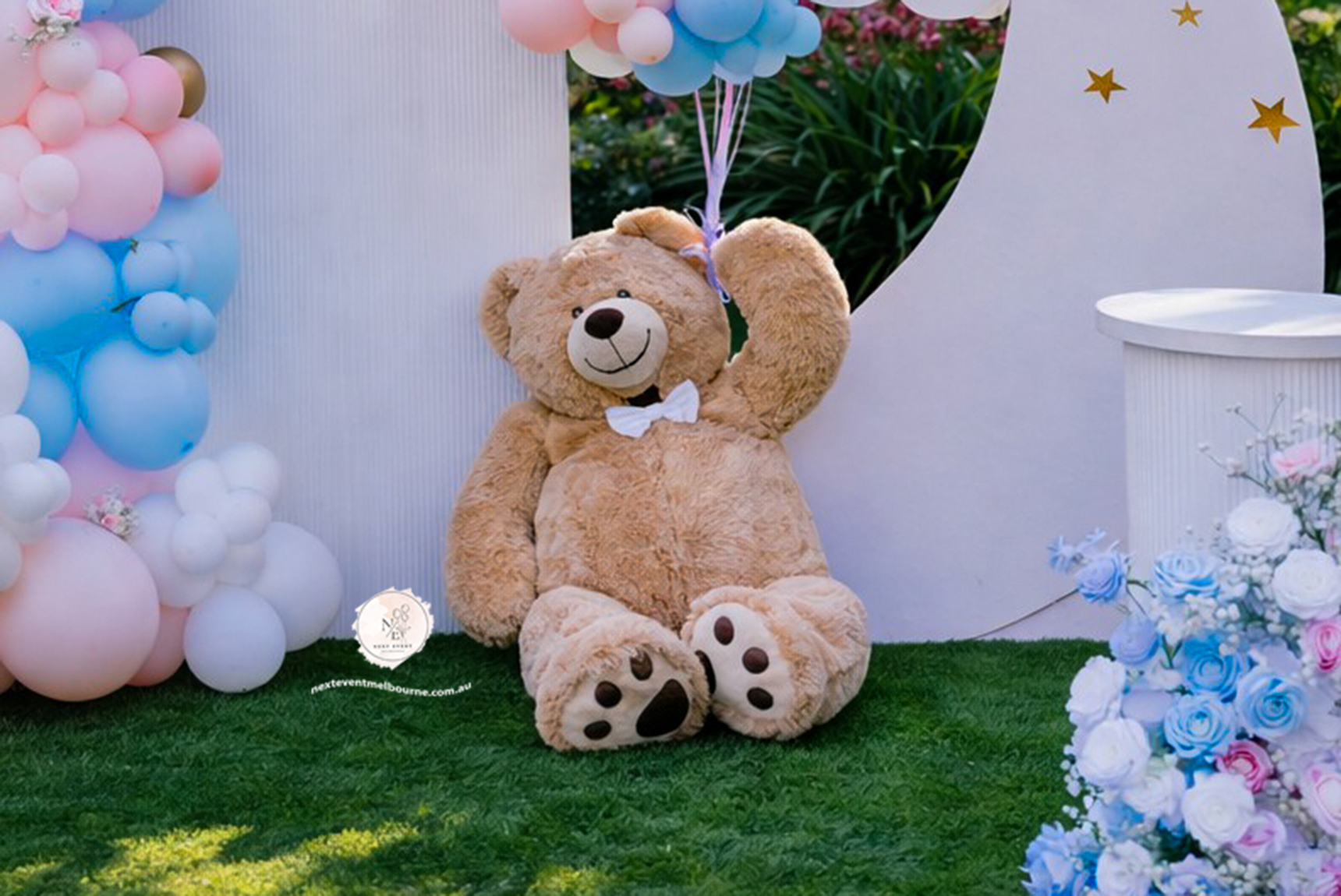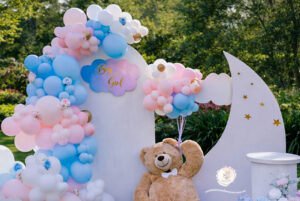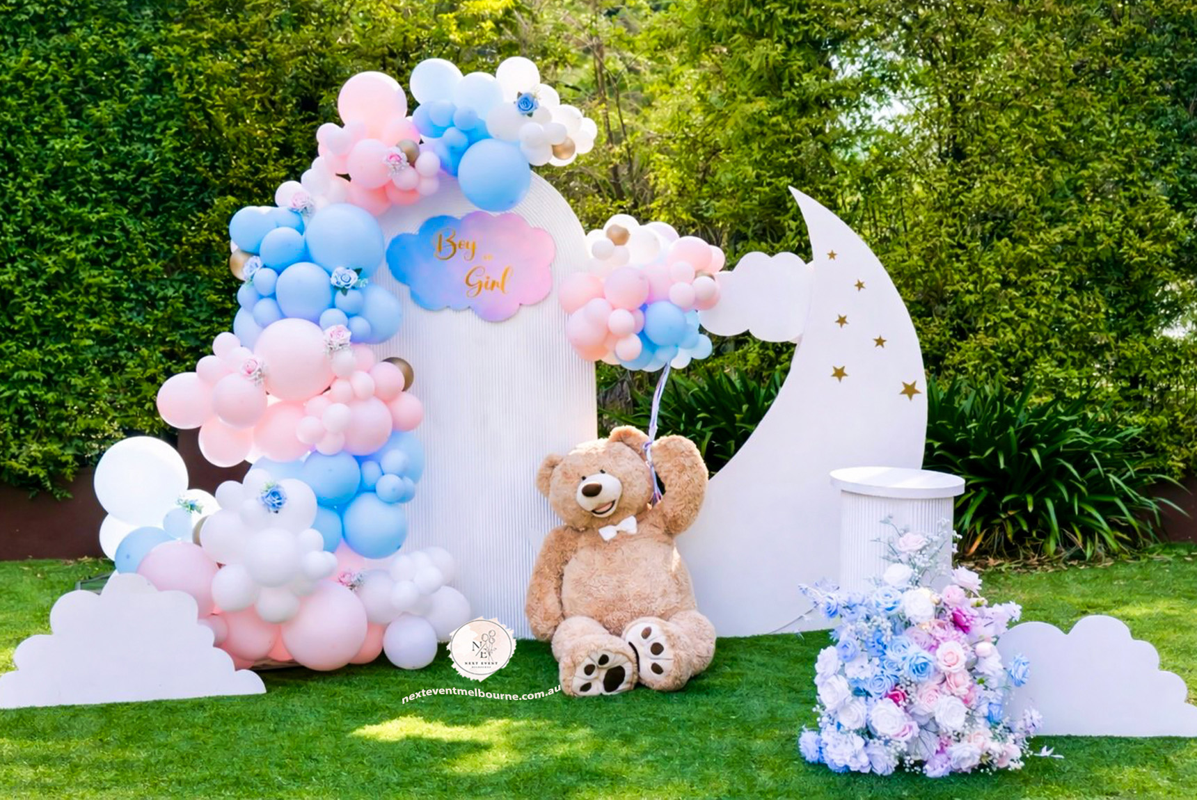 A dreamy pastel Gender Reveal setup styled by Next Event Melbourne Creating magical moments for your special celebrations.