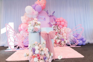 Soft pastels, fluttering butterflies, and delicate florals — the perfect butterfly-themed setup for a beautiful celebration.